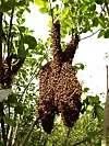 Henting av sverm i en hekk. (Foto: Eli Åsen)
