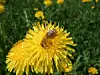 Bie på løvetann. Løvetann gir rikt med pollen og nektar tidlig på våren, når det er lite annen næring å hente. (Foto Eli Åsen)