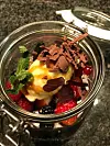 · Sjokoladeterrine med passionsfrukt, servert med bringebær og Valhrona-Nougatte.