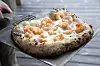 Pizza med scampi har blitt en favoritt – og så tar det seg så godt ut her på Sirevåg, plassen for havets delikatesser ifølge Svein. Westlund Karlsen. (Foto: Lise Bjelland)