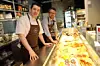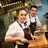 Gunnar Jensen sammen med kokkelærling Elise Lorentsen i Mathallen Tromsø. (Foto: Morten  Holt)