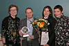 Fra venstre prisutdeler Kristin Waagen fra Tingvollost, Mosbøen gård ved Åse Torvik og Anders Øverås, og prosjektleder Marit Strand fra Matmerk.