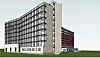 Den nye hotelldelen (til venstre) skal bygges der det i dag er parkeringsplass. (Illustrasjon: Scandic Helsfyr)