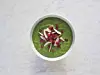 Smoothiebowl er en herlig smoothie av kokosvann, banan, avokado, eple, romanosalat, persille, koriander og pepper, Toppes den med nøtter, frø, granateple og kokosflak.