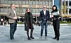Disse fire har alle vært nøkkelpersoner i planlegging, produksjon og distribuering av filmen. Fra venstre Jens Storli (kongress- og arrangementssjef i Visit Trondheim), McKenna Starck (markedssjef i Visit Trondheim), Lasse Berre og Tanja Holmen. (Foto: Berre Kommunikasjonsbyrå/ Markus Nymo Foss)