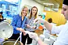 Her får seksjonsleder for klinisk ernæring, Oddveig Drøpping og klinisk ernæringsfysiolog Ida Kristiansen servert suppe av førstekokk Roar Eriksen fra produksjonskjøkkenet på Forus på ernæringsdagen tidligere i år. (Foto: Svein Lunde)