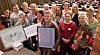 Tjenesteleder Hanne Hagen-Jensen (midten foran) og en rekke andre glade ansatte som var med da Bærum Storkjøkken fikk Matomsorgsprisen 2013 på Oslo Kongressenter i i fjor. Fra venstre Marit Bekkevold, Fredrik Kristensen, Michael Gvein, Geir Nygård, Anders Weltzin, Wenche Rusten Jacobsen, Steinar Moe, Magnus Nymoen, Eden Gehebreden, Anita Storødegård, Charintiph Nygård, Helen Røstad-Tollefsen, Rong Chen Chu og Eva Høyen. (Foto: Morten Holt)