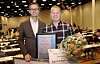 Kjøkkensjef på Fosen folkehøgskole i Rissa, Bjørn Erik Vangen, er tildelt Matomsorgsprisen 2014. Her sammen med juryleder Ivar Villa fra bRest bedriftsrestauranter. (Foto: Morten Holt)