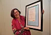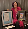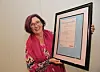 Liselotte Bjelke med diplomet og kunstverket som vinneren av Matomsorgsprisen blir tildelt. (Foto: Morten Holt)