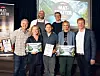 Foran fra v.: Johan og Ingunn Anstenrud (Den sorte havre), Kristoffer Evang og Anne Marte Ruud (Ask gård), Menysjef Vegard Kjuus. Bak fra v.: Espen Lie (Meny) og Eivind Haalien i Norgesgruppen. (Foto: Meny)