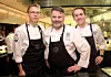 Christer Rødseth (til høyre) er en av dommerne i NM i kokkekunst 2017. Nylig var han coach for Geir Magnus Svae i midten i Årets kokk. Til venstre Henrik Falkensten, som ble kåret til beste commis i Årets kokk 2017. (Foto: Morten Holt)