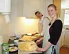 En av hjelperne Regine Bakken (til høyre) og lefsebaker Anita Vik i bakeriet. (Foto: Morten Holt)