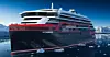 Illustrasjon av det nye hybridskipet til Hurtigruten, MS Roald Amundsen.