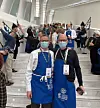 Eivind Haalien og Svein Erik Backlund fra Oluf Lorentzen (foran) når dommerne entrer dømmingsområdet, anført av sekkepiper og trommer. (Foto: Privat)