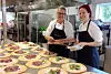 Ane Oppegård Østenengen (nærmest) tilbereder elgwrap på kjøkkenet på Scandic Elgstua sammen med Lillian Nordli. (Foto: Scandic Elgstua)