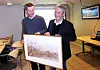 Sjefredaktør i Gudbrandsdalen Dagningen, Kristian Skullerud, deler ut Årets kulturpris for Gudbrandsdalen til meierisjef Erik Isum på Tine Tretten. Tretten-meieriet er Norges største produsent av grøt og lager all ferdiggrøten til Fjordland. Isum delte umiddelbart æren og prisen med alle ansatte på Tretten.