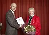 Liv Gregersen Kongsten mottar Kongens Fortjenstmedalje i sølv etter 40 års tjeneste for Mills.