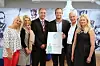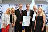Preben Moen har fått prisen Helt sjef. Her sammen med blant andre arbeids- og sosialminister Robert Eriksson og juryleder for prisen, NHO-president Leif Frode Onarheim.