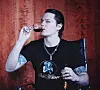 Anne-Kat Hærland med vin fra Italia.