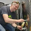 Asbjørn Børsheim tapper sider. (Foto: Linn Steen)