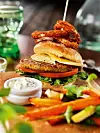 Falafelburger, 90 g: Denne burgeren er laget på samme oppskrift som Findus Falafelboller. Kikerter krydret med bl.a. persille, spisskummen og hvitløk – og med litt mer struktur for å få den rette burger-følelsen. Flere kjøkken etterspør denne muligheten som et godt og moderne alternativ til de klassiske burger-løsningene. Falafels opprinnelse er fra det arabiske kjøkken hvor falafel er en populær form for hurtigmat. Serveres f.eks. i brød med mye variert tilbehør. (3,33 kg – 37 x 90 g)