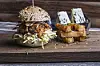 Svineburger med Blå Castello og Coleslaw