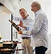 – Jeg håper denne gløggen kan bidra til å skape den gode julestemningen, sier Eyvind Hellstrøm, her sammen med Christopher Moestue i Moestue Grape Selections. (Foto: Morten Holt)