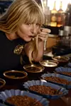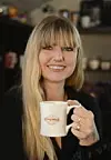 Mette Nyegaard Serkland tester kaffen. (Foto: Impuls Reklamebyrå)