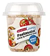 Pastasalaten er første kalde rett i Fjordland Lunsj-serien. Retten består av saftige kyllingbiter, grillet hvitløk og ristede gresskarkjerner blandet med pastaskruer. En fyldig dressing av soltørket tomat og urter dekker det hele. Lunsjen inneholder gaffel og kan spises med en gang, rett fra boksen, om du er på bussen, på forelesning, i parken eller på stranden.