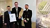 Fra utdelingen av Svanemerket til Greenway-Norge med administrerende direktør Jan-Erik Pavels Smith (midten) i spissen. Til venstre Tormod Lien fra Svanemerket og til høyre Pål H. Stenberg, orlogskaptein/fungerende seksjonssjef for forpleining i Forsvarets logistikkorganisasjon. (Foto: Jan Erik Stokke, Svanemerket)