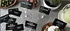 Firmaet benytter svarte lettleselige plastkort, som skrives ut maskinelt med godt synlig bilde og tekst. Dette gjør at du som gjest/kunde får god informasjon og allergi-symboler på kortet.