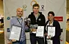 Fra venstre Tore Lorentzen, salgssjef i Mydland AS i Tromsø, som tok sølvet med sin Franz Josef Spekepølse, gullvinner Tor Olav Lundal (spekebacon) og Lise Mangseth, som representerer Lofoten Gårdsysteri med osten «Steinfjording Havsmak» fra Lofoten Gårdsysteri. (Foto: Rune Stolz Bertinussen/ Reiseliv i Nord AS).