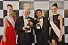 Francesco Paradiso (nummer to fra høyre) i Norwegian Cruise Line har fått prisen av Graham Cooke, president og grunnlegger av World Travel Awards.