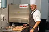 Odd Ivar Jørgensen i boks 1 i Årets Masahiro-kokk 2014 blir intervjuet av konferansier Ole Martin Alfsen. (Foto: Morten Holt)