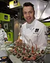 Salgssjef og kokk hos Mills Proff Partner, Asgeir F. Johansen, byr på ingefærsild. Mills satser stort på sild, og håper å dra silden inn i "sushiverdenen" både med tradisjonelle og nye smaker. Du kan lese mer om Mills' satsing på sild i neste nummer av Horeca, nummer 2 2014. (Foto: Morten Holt)