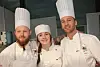 Vinnerne av Årets Grønne Kokk 2014, Tore Carlsson Sægrov (til venstre) og Are Nordvedt, sammen med hjelper Runa Kvendseth fra Etterstad videregående skole. (Foto: Morten Holt)