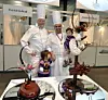 NM i konditorkunst 2011: Både dommer Eivind Hellstrøm, vinner Patrick Dufaud og hans to døtre Emma Louise og Anna Sophie (på armen) hadde all mulig grunn til å smile etter seieren. (Foto: Ole Petter Opøien, Norges Varemesse)