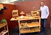 Produkter i tre blir mer og mer populært i horecabransjen, sier Ole Henrik Eftedal. Her med en serveringsvogn med flere bruksområder. (Foto: Morten Holt)