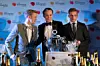 De tre beste i Nordisk mesterskap for vinkelnere 2017. Fra venstre sølvvinner Henrik Dahl Jahnsen, vinner Fredrik Lindfors og bronsevinner Rasmus Marqvart. (Foto; Norsk vinkelnerforening)