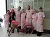 Restauranten var pyntet fra topp til tå i rosa, og det samme var det ansatte. De hadde for anledningen rosa uniformer.