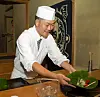 På Miyamasou arbeider kokken rett foran gjestene. Løsningen er uvanlig på en japansk ryokan, der maten vanligvis serveres på rommet. (Foto: Georg Mathisen)